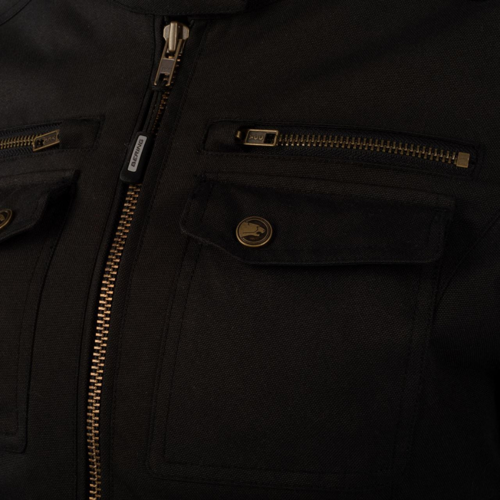 4 bolsillos externos, bolsillo en el antebrazo, bolsillo billetera y 2 bolsillos internos.