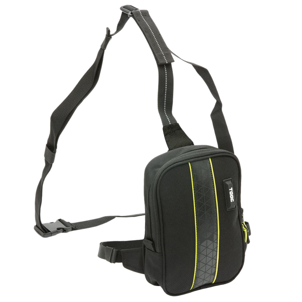 Alça de cintura ajustável e destacável, com detalhes refletivos.