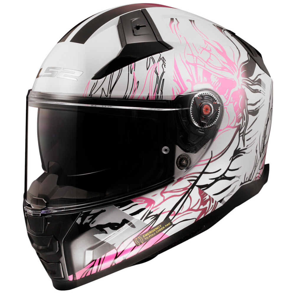 "Sistema de liberación de emergencia", es decir, el primer asistente puede quitar fácilmente las almohadillas faciales en caso de accidente, y luego el casco se puede quitar suavemente