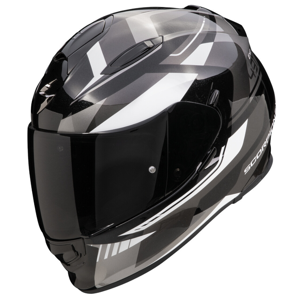 Utiliza la carcasa multicapa Scorpion EPS y tiene un sistema de ventilación de aire que proporciona una importante entrada y salida de aire, tiene una visera compatible con Pinlock MaxVision® (se vende como accesorio) diseñada para ofrecer un campo de visión más amplio, la humedad -El forro Kwikwick® C que absorbe la humedad y es completamente removible y lavable es una ventaja, y también tiene una visera solar SpeedView® integrada.