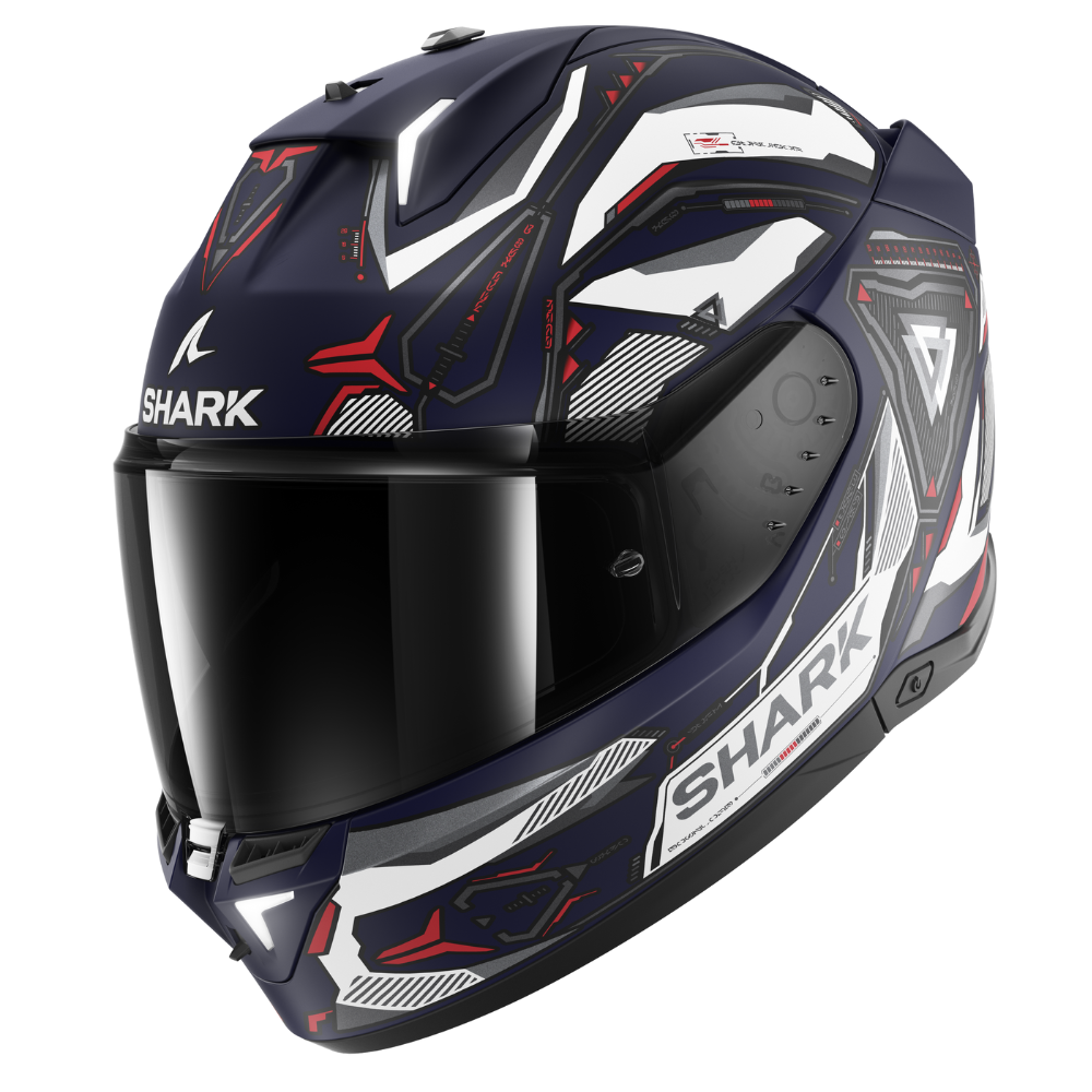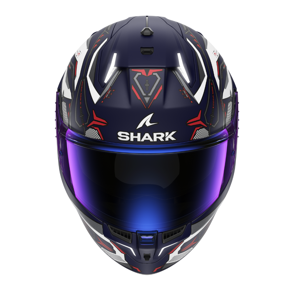 Un casco extraído directamente del mundo del motociclismo y la ciencia ficción. Esta combinación de aerodinámica y robótica acentúa la iluminación.