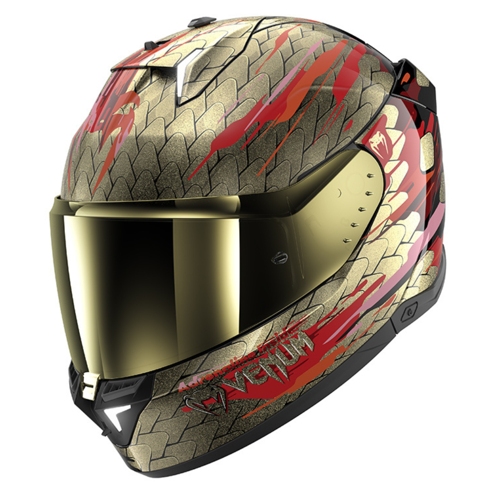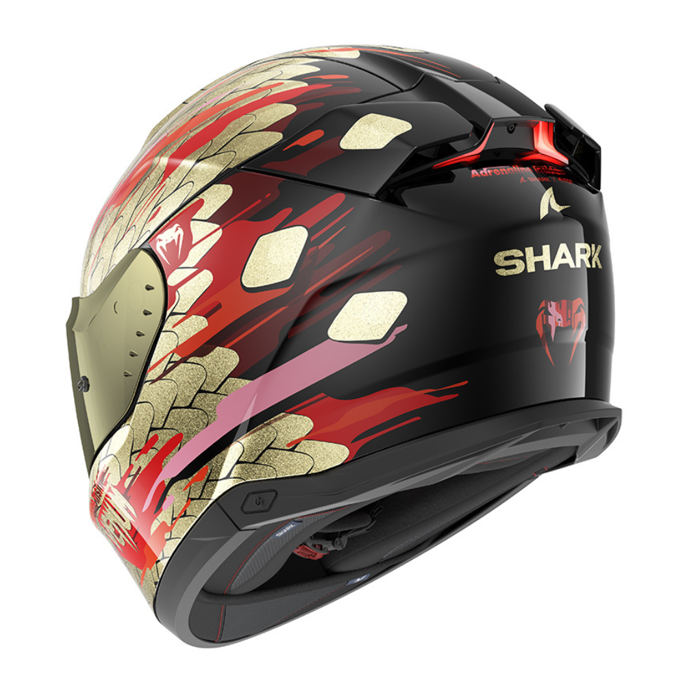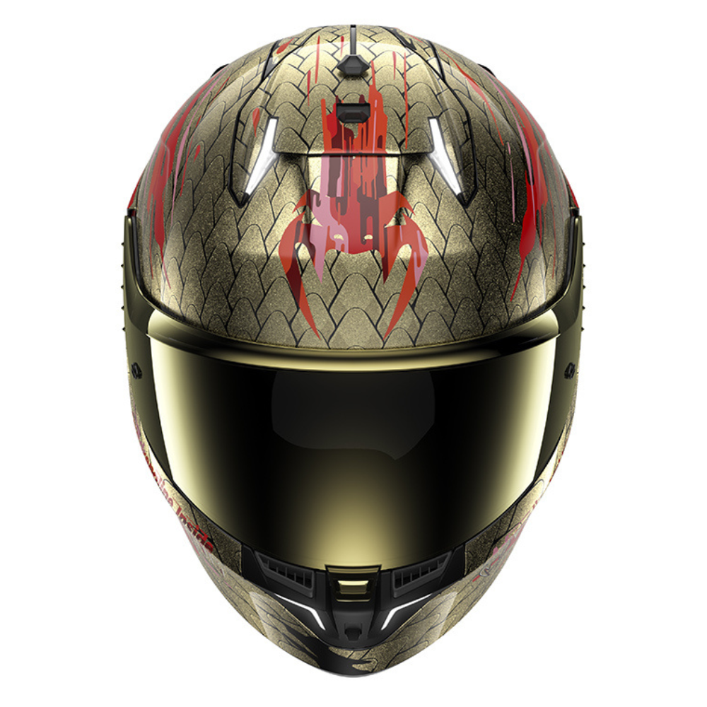 Un casco extraído directamente del mundo del motociclismo y la ciencia ficción. Esta combinación de aerodinámica y robótica acentúa la iluminación.