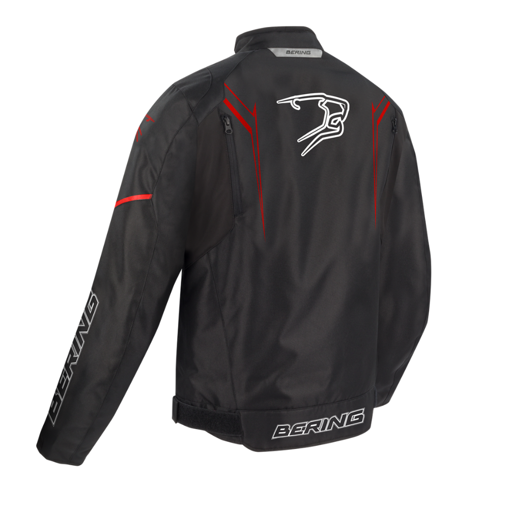 Chaqueta Bering Sweek . Chaqueta de estilo deportivo confeccionada en Fibratech 600D altamente resistente a la abrasión con inserciones Softshell. Destaca por su membrana impermeable BWTECH Super, sistema de ventilación ajustable ADS y forro térmico SHELLTECH Super extraíble que permiten una fácil adaptación a las condiciones climáticas. Incorpora protecciones OMEGA extraíbles en hombros y codos, así como la posibilidad de montar un protector de espalda (no incluido). Múltiples bolsillos para almacenamiento práctico.