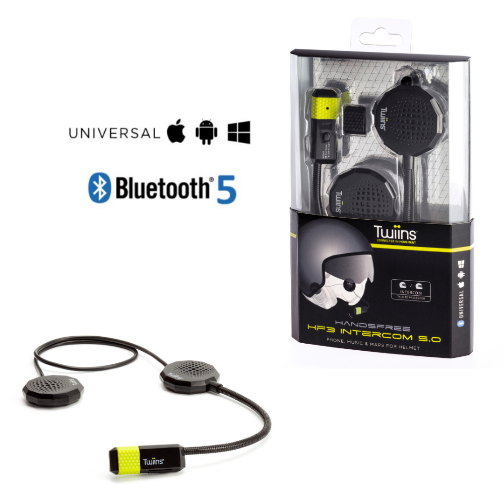 El INTERCOMUNICADOR HF3 se puede emparejar con todos los dispositivos manos libres TWIINS®, lo que le permite comunicarse de forma segura con su pasajero sin tener que apartar la vista de la carretera.