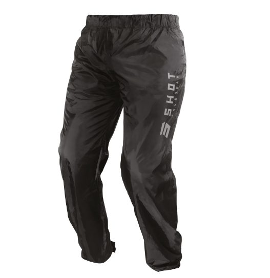 Calças impermeáveis Costuras resistentes à água Cintura elástica Logótipos refletores Tornoselos ajustáveis Corte largo