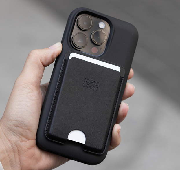 A Carteira Quad Lock MAG™ é uma forma conveniente de transportar múltiplos cartões de forma segura com o seu telemóvel. Fixação segura Graças à funcionalidade Quad Lock® e aos ímanes fortes, você pode estar completamente confiante de que os seus cartões estão seguros, presos na parte de trás do seu telemóvel. Mesmo ao retirar o telemóvel do bolso, a Carteira permanecerá firmemente bloqueada no lugar. A Carteira foi projetada para transportar confortavelmente entre um e três cartões, e graças à engenharia inteligente, é tão segura com um cartão quanto com três. Design elegante Fabricada a partir de um elegante e durável couro vegano preto, com textura subtil e logótipo em baixo relevo, a Carteira Quad Lock MAG™ combina perfeitamente com a sua Capa MAG. A ranhura na parte inferior da Carteira permite-lhe remover os cartões sem a necessidade de desconectar a Carteira da sua Capa. Pagamentos facilitados Utilize a funcionalidade de toque para pagar dos seus cartões sem a necessidade de os retirar da Carteira.* *A funcionalidade de toque para pagar pode ser interrompida com múltiplos cartões RFID de pagamento na sua Carteira. Especificações Técnicas