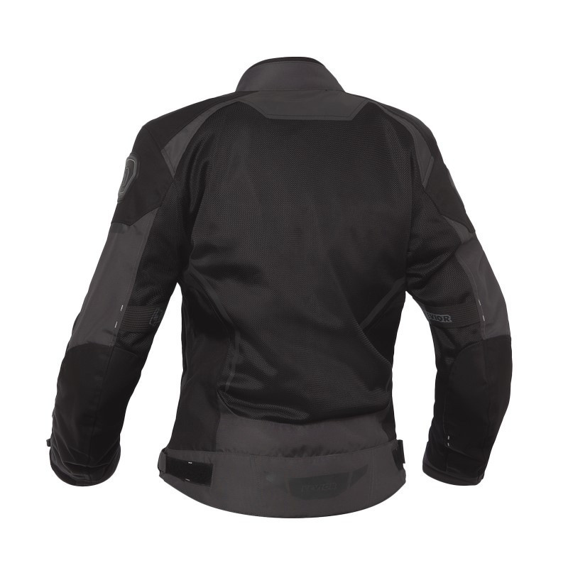 Mangas pré-curvadas e aberturas laterais para maior conforto na posição de pilotagem