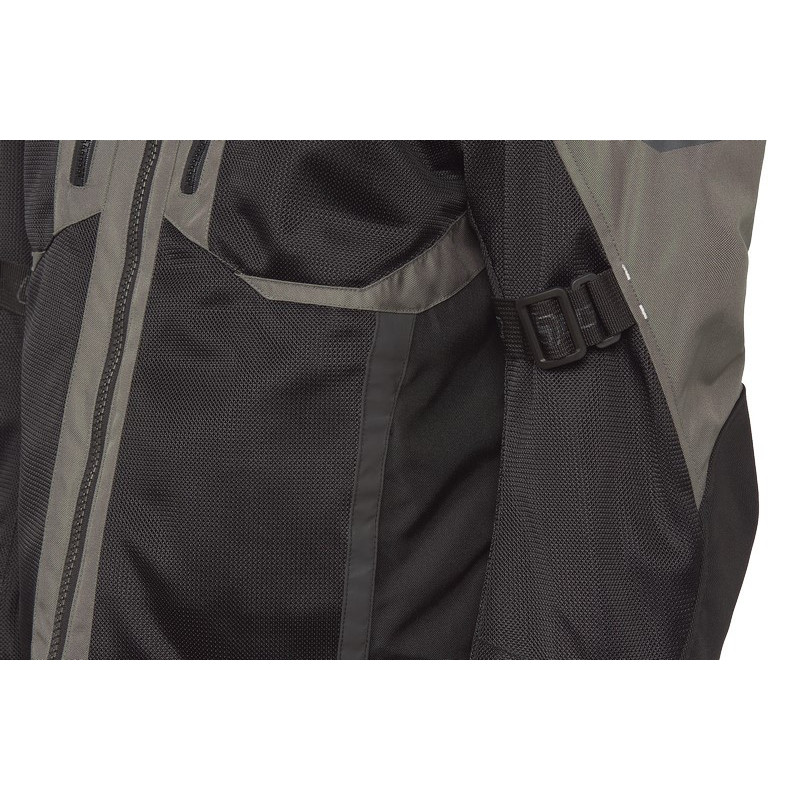 Tecido externo antiabrasão 500D com grandes painéis de malha ventilada no peito, costas e braços.