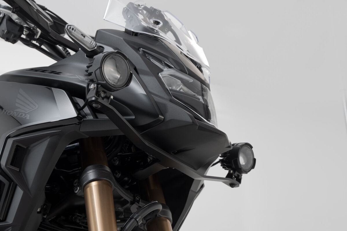 Estes suportes específicos para cada moto permitem posicionar de forma ideal as luzes EVO, uma vez que são desenvolvidos exclusivamente para cada modelo de motociclo. Os elementos robustos, fabricados em aço com revestimento a pó, são aparafusados nos pontos de fixação já existentes. Garantem uma fixação segura das luzes EVO, mesmo em condução fora de estrada. Consulte as instruções de montagem para verificar se os faróis podem ser montados na vertical, invertidos e/ou lateralmente no seu modelo de moto.