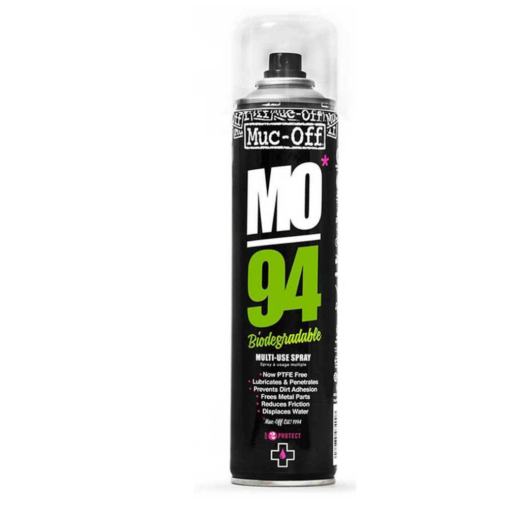 Procurando por um spray maravilhoso completo? Não procure mais! Muc Off MO 94 cobre todas as bases com sua incrível fórmula que penetra de maneira rápida e eficaz na umidade, lubrifica as partes móveis e deixa uma película protetora de longa duração. O MO 94 impede a adesão de sujeira e também remove o excesso de água para evitar a ferrugem e a corrosão. MO 94 não é apenas para bicicletas, motocicletas ou carros. Não. Funciona em quase tudo. Quer você tenha uma dobradiça de porta que range, uma fechadura enferrujada ou um ferrolho que você simplesmente não consegue girar, MO 94 é tudo que você precisa.