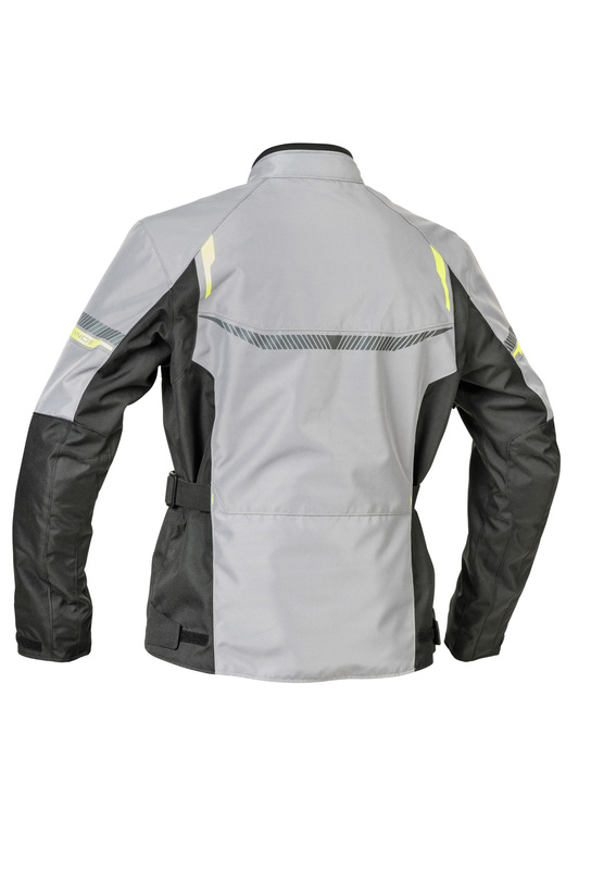 Casaco de turismo impermeável e respirável, com membrana Dryway em formato drop-liner, fecho de ligação às calças, ajustável na cintura e nas mangas.