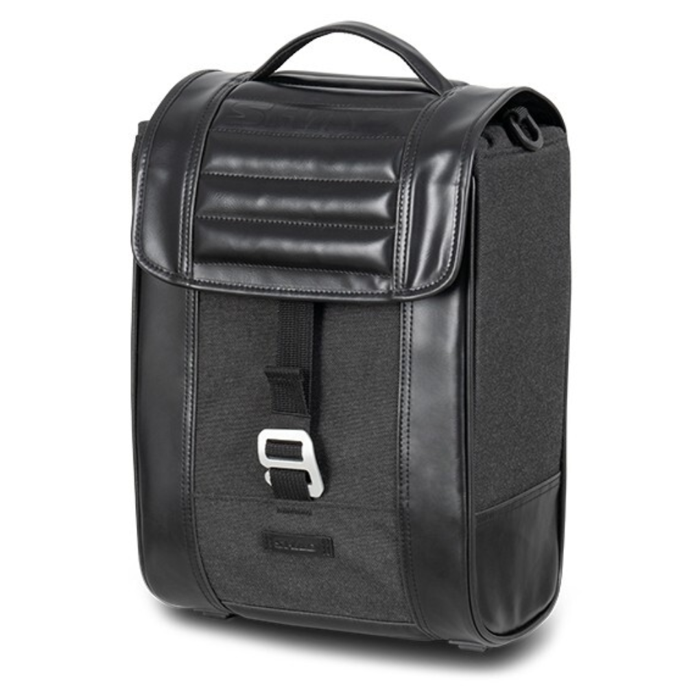 Custom and Cafe Racer bikers agora têm um novo padrão para as suas bolsas de motocicleta. Com esta nova linha de estética vintage e seu visual retrô, a SHAD busca satisfazer os amantes do estilo old school, da alta velocidade e do bom gosto. Feitas com couro sintético de alta qualidade e alta resistência aos UV, possuem sistemas de encaixe rápido e recursos de segurança que permitem ao motociclista a máxima praticidade sem perder de vista os detalhes estéticos característicos deste estilo estabelecido nos anos 50. Informações: Bolsa lateral de capacidade de 10 litros com forro interno à prova d'água IPX5, eficaz contra chuvas intensas. É fixada à motocicleta facilmente e rapidamente através do suporte de bolsa lateral SR e segura graças a um sistema de fechadura com chave. O sistema de fechamento dobrável mantém os pertences do usuário seguramente numa bolsa interna à prova d'água e removível. Inclui também uma alça de ombro para transportá-las com comodidade.