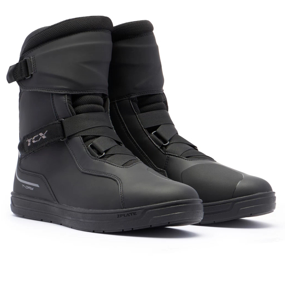 Botins de moto touring com membrana impermeável T-Dry, sola Groundtrax® e inserção Zplate®. Concebidos para garantir conforto, proteção e máxima versatilidade de uso.