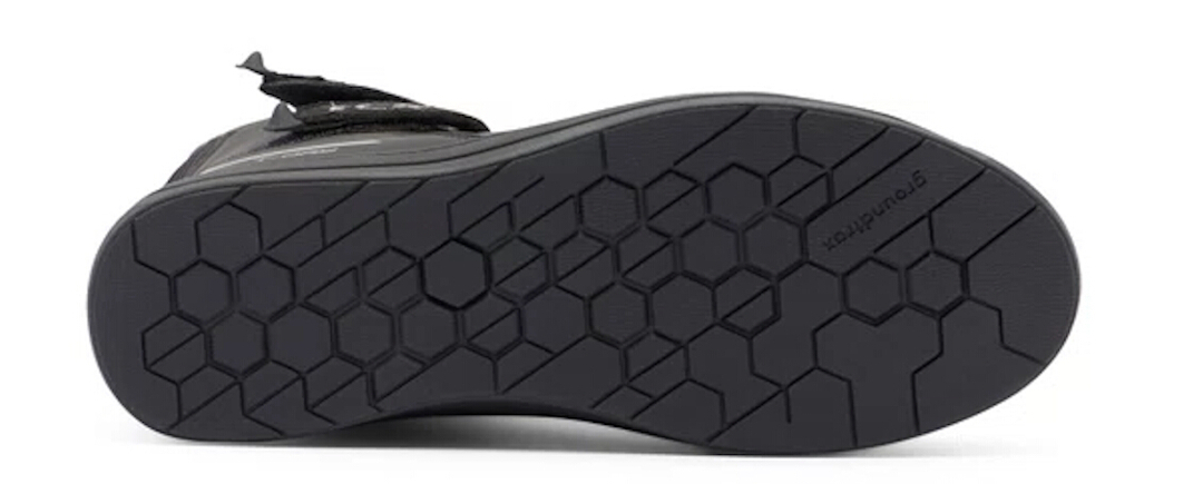 A sola Groundtrax® assegura estabilidade, aderência e tração ideal nos apoios para os pés da moto, além de oferecer conforto superior ao caminhar. A tecnologia Zplate® combina rigidez transversal com elevada flexibilidade longitudinal, permitindo que as botas absorvam impactos laterais sem comprometer a mobilidade natural do pé ao andar.