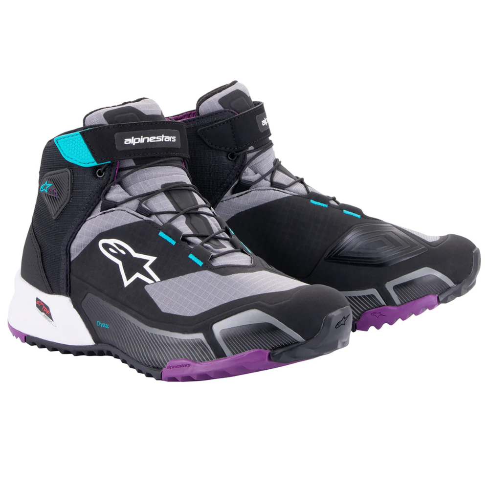 Um sapato de motociclismo protetor, que oferece um conforto excecional ao caminhar fora da moto e durante todo o dia. O Alpinestars CR-X apresenta uma forma inspirada no calçado de corrida, garantindo um ajuste confortável e um interior espaçoso, ideal para proporcionar bem-estar prolongado. A membrana Drystar®, impermeável e respirável, assegura um desempenho eficaz em todas as condições meteorológicas.