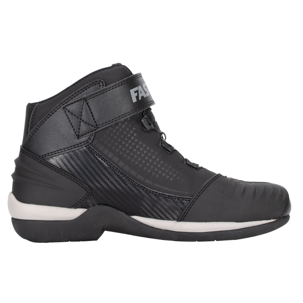 Amarrar atacadores é coisa do passado. Com a bota city & urban Fastway *City 1*, basta girar o "botão da bobina" para ajustá-la ao seu pé. O segredo é o sistema "atop", o que significa que você gira a pequena roda na lateral da bota para apertar e prender o cadarço. Para desapertá-la, basta rodar um pouco a roda para trás (até ao batente) e pode deslizar confortavelmente o pé para fora da mala. A Fastway *City 1* também é uma bota de motocicleta de microfibra resistente e leve.