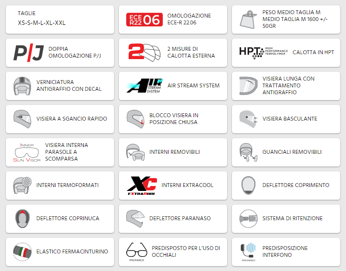 Uma nova atualização para um capacete que, tal como o seu antecessor, o 508 BERLINO, é o companheiro ideal para qualquer viagem. O 568 BER é um capacete modular com carcaça HPT (High Performance Terpolymer) disponível em dois tamanhos externos. O sistema de ventilação que canaliza os fluxos de ar dentro da carcaça garante a manutenção de uma temperatura ideal mesmo nos meses mais quentes, enquanto o defletor do protetor nasal, o defletor da tampa e o complexo defletor do pescoço transmitem o ar para manter o capacete estável e silencioso mesmo em altas temperaturas. velocidades. A viseira externa inclinável, com liberação rápida e trava na posição fechada, está preparada para Pinlock 70, enquanto a viseira solar retrátil interna ajuda o piloto a se adaptar às diferentes condições de luz. O conjunto de interiores hexagonais termoformados é confeccionado em tecido extracool e inclui um alojamento especial para as hastes dos óculos. A preparação do interfone deste modelo é caracterizada por um alojamento para o corpo do fone de ouvido e um suporte para o pedestal do microfone. A fivela micrométrica e o porta-alça elástica tricolor completam o equipamento de última geração do capacete.