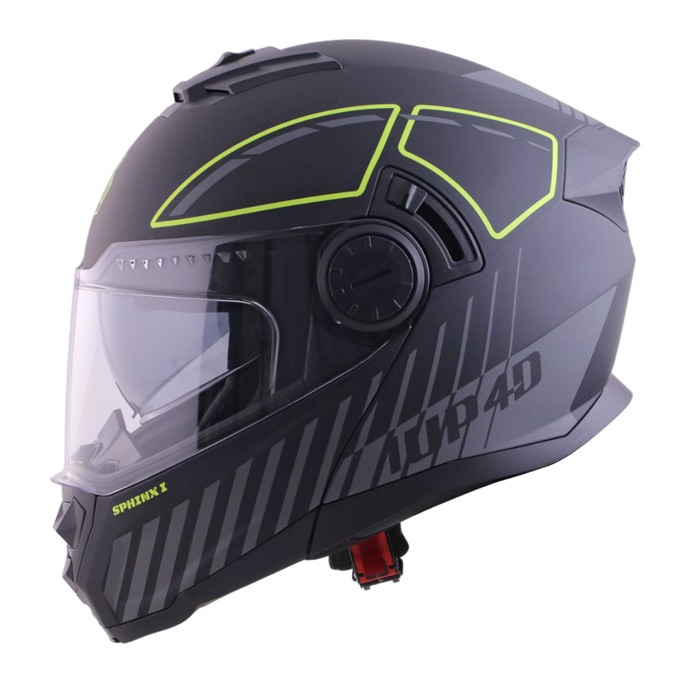 Para além disse, este novo “porta-estandarte” de capacetes na gama da 1UP4D alcançou a Dupla Homologação P/J e como principais características destacam-se a viseira solar integrada, uma pala solar opcional (que pode ser montada ou desmontada muito facilmente nos mecanismos laterais) e correias de emergência “pull-on” nas áreas inferiores do estofo, na zona do queixo. O SPHINX I está disponível numa gama variada de combinações de cores e opções de acabamentos.