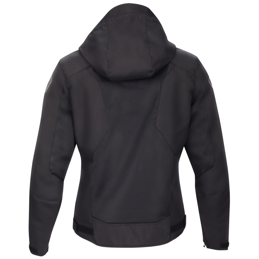 O conforto em condução é reforçado por detalhes ergonómicos pensados para utilizadores exigentes. Equipado com extensão de gola protetora, a sua estrutura ventilada evita a acumulação de calor, mesmo em deslocações urbanas intensas. O capuz removível acrescenta versatilidade, permitindo adaptar rapidamente o casaco ao ambiente, seja em condução ou a pé, mantendo total liberdade de movimentos.