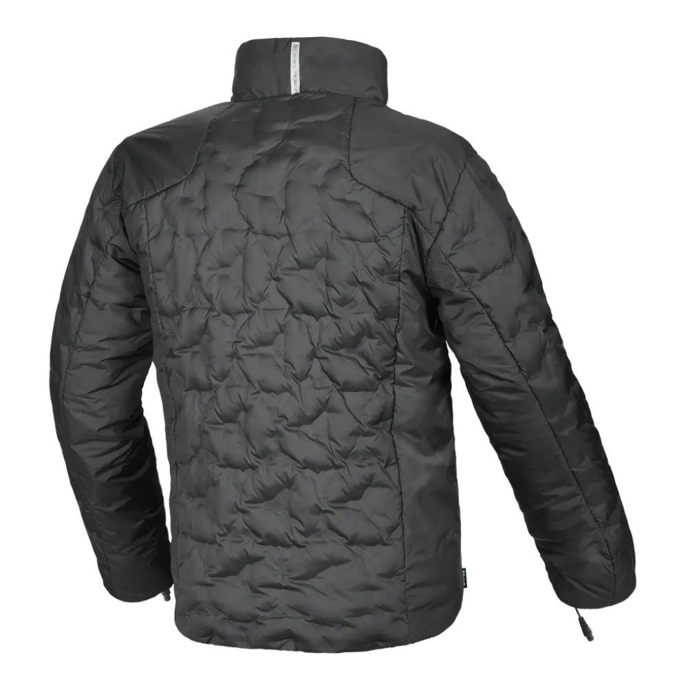 Uma jaqueta de camada base aquecida eletricamente, desenvolvida para quem se desloca diariamente e para motociclistas em condições de frio.