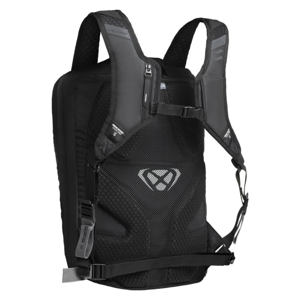 Alça trançada posicionada aerodinamicamente, fundo de bolsa reforçado, abertura no compartimento frontal para bolsa de água ou cabo de telemóvel ou cabo de auriculares, áreas refletivas.