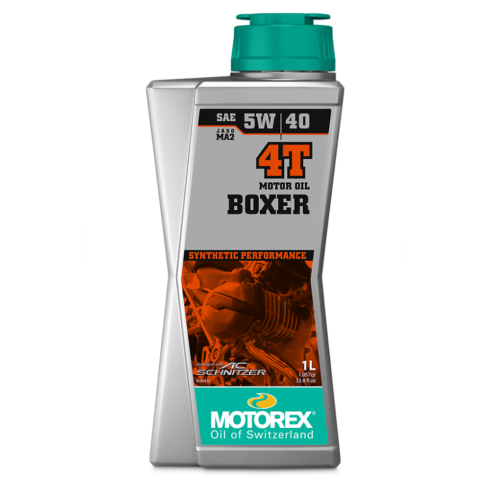 MOTOREX BOXER 4T SAE 5W/40 foi especialmente desenvolvido para motores boxer refrigerados a água (por exemplo, BMW). Ele fornece uma excelente solução para atender aos requisitos específicos de motores refrigerados a água/óleo. Testes realizados em cooperação com especialistas da AC SCHNITZER, especialista em tuning da BMW, garantem o máximo desempenho