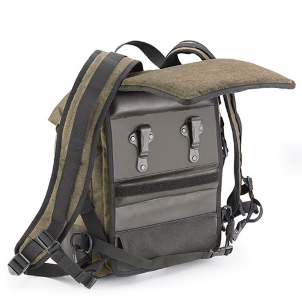 Bolsa lateral convertível em mochila, especialmente desenhada para motos Café Racer.