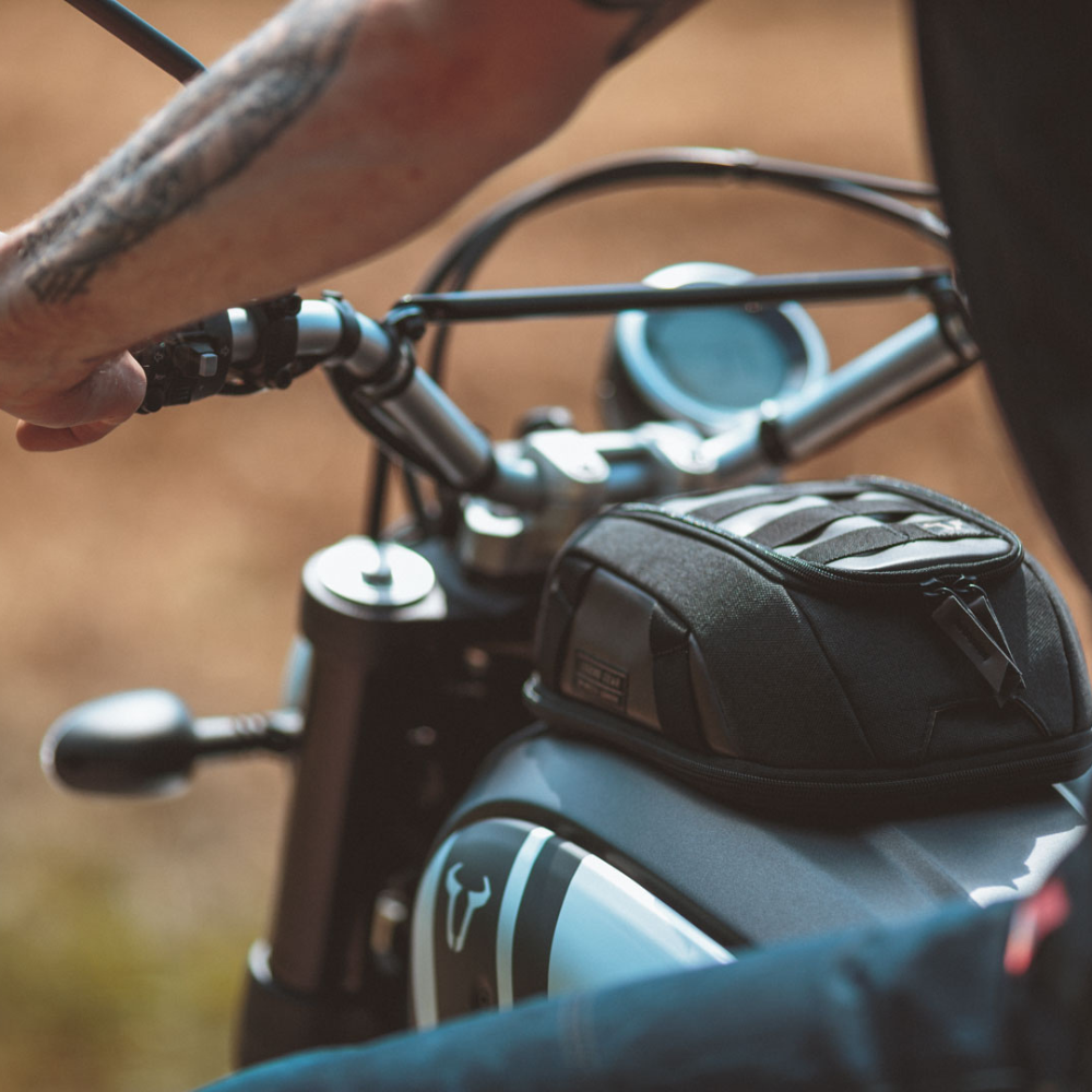 A mochila tanque Legend Gear é ideal para motocicletas clássicas, como a Scrambler e a Café Racer. Este saco tanque SW-MOTECH é feito de couro sintético napalon e lona encerada com revestimento interno à prova de salpicos. A capa de chuva impermeável com janela de PVC transparente fornece proteção adicional contra intempéries. Graças à alça de transporte resistente, o saco do tanque pode ser facilmente transportado.