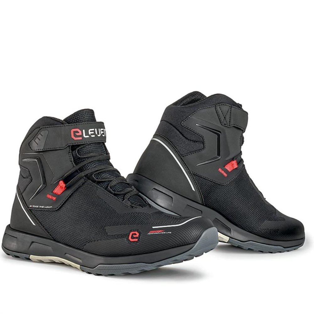 Botas Eleveit Nirvana WP Negras. Botines bajos para uso urbano, perfectos para el uso diario en la ciudad. Confeccionada en ante con tratamiento impermeable y para una mayor protección contra la lluvia, incluye membrana E-Dry. Dispone de protecciones de goma en la puntera y el tobillo, protecciones en el exterior de la bota y almohadillas en la zona de equipamiento. Entresuela de EVA que proporciona una adecuada amortiguación y suela de goma con patrón de ranuras para máximo agarre.