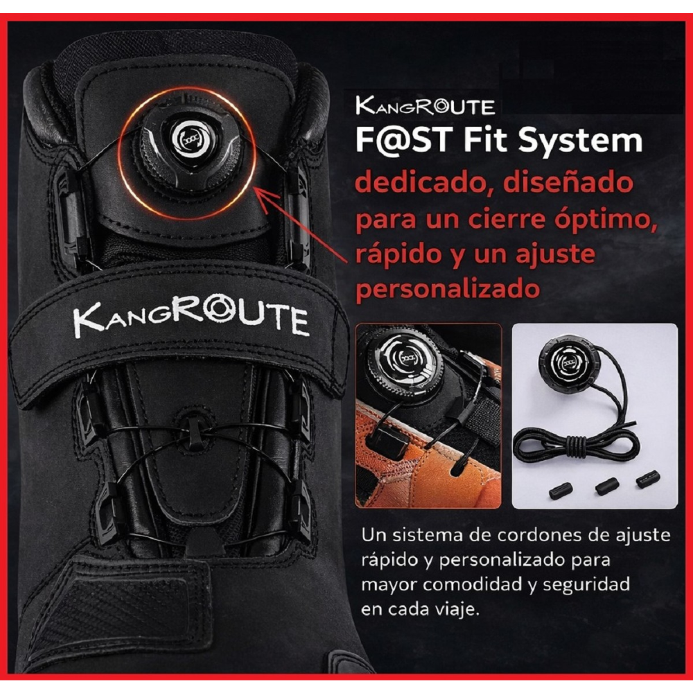 Sistema de Fecho: Sistema inovador Fast-Fit (atacadores rápidos) combinado com velcro para um ajuste rápido, preciso e seguro.