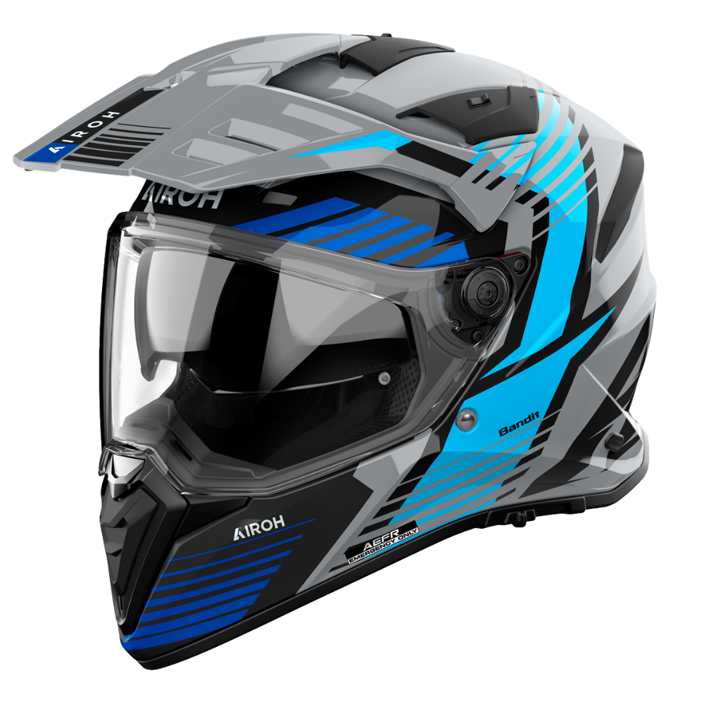 O Airoh Bandit é um capacete integral Trail / Adventure que se destaca pela sua elevada versatilidade, oferecendo a funcionalidade de dois capacetes num só. Graças à pala (viseira) removível, permite adaptar facilmente a estética e a funcionalidade ao estilo de condução, passando de uma configuração adventure para uma utilização mais road, com melhor aerodinâmica e estabilidade.