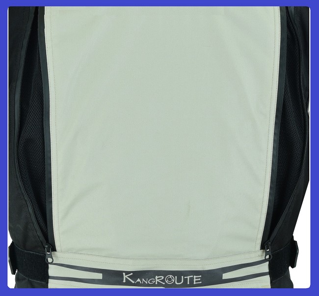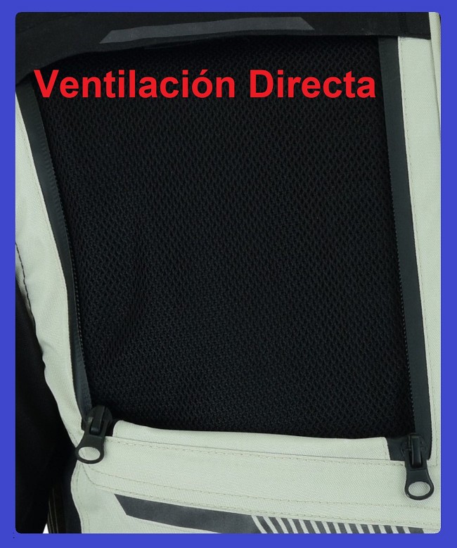 Dispone de amplias entradas de aire en la espalda con cremalleras impermeables.