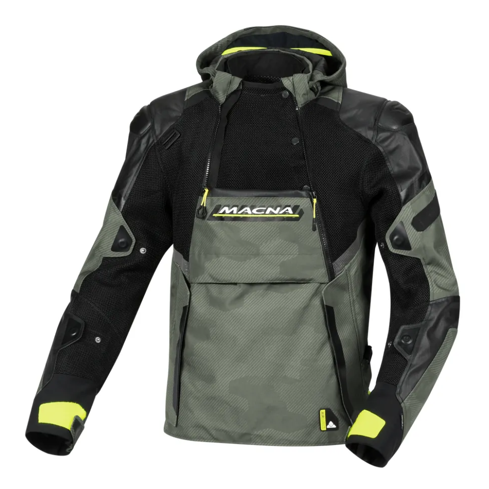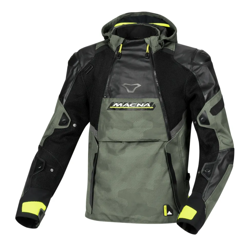 La chaqueta Bradical de Macna es incomparable con su estilo Anorak y su cremallera principal descentrada que recorre toda su longitud. Es adecuado para condiciones de conducción de templadas a cálidas gracias al forro desmontable Raintex ML, que es muy cómodo para la piel ya que la membrana está laminada contra un tejido de malla. Además del gran bolsillo canguro en la parte delantera, también tiene un bolsillo grande en la parte trasera, útil para guardar el forro desmontable. Se instalan grandes paneles de ventilación de malla 3D en el pecho, la espalda y los brazos para proporcionar mucha ventilación en los días más cálidos. Los protectores de nivel 1 clase A en hombros y codos, así como los detalles reflectantes, garantizan un alto nivel de seguridad. La chaqueta también se puede adaptar con un protector de espalda (se vende por separado).