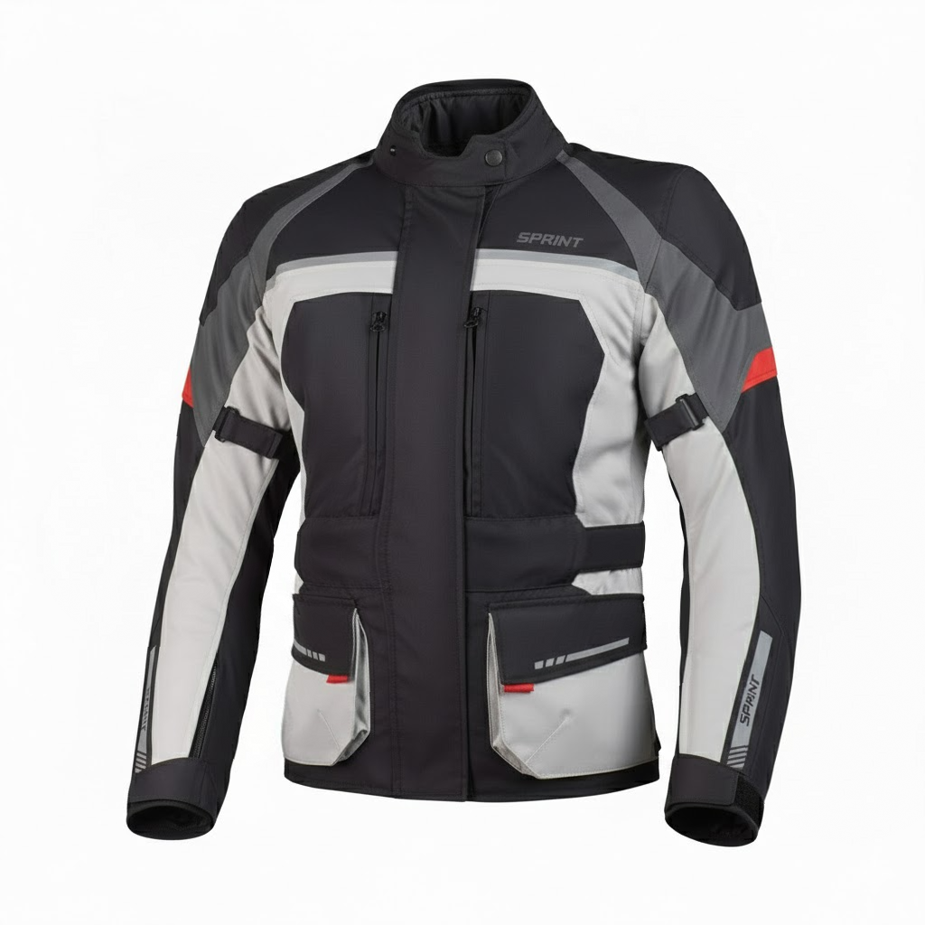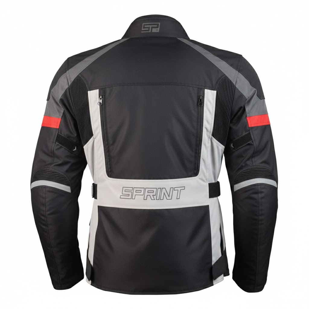 O blusão SPRINT KENIA em poliéster resistente impermeável, respirável e inclui forro térmico removível e protecções CE nos ombros e cotovelos. Conforto,estilo e segurança para o motociclista urbano.