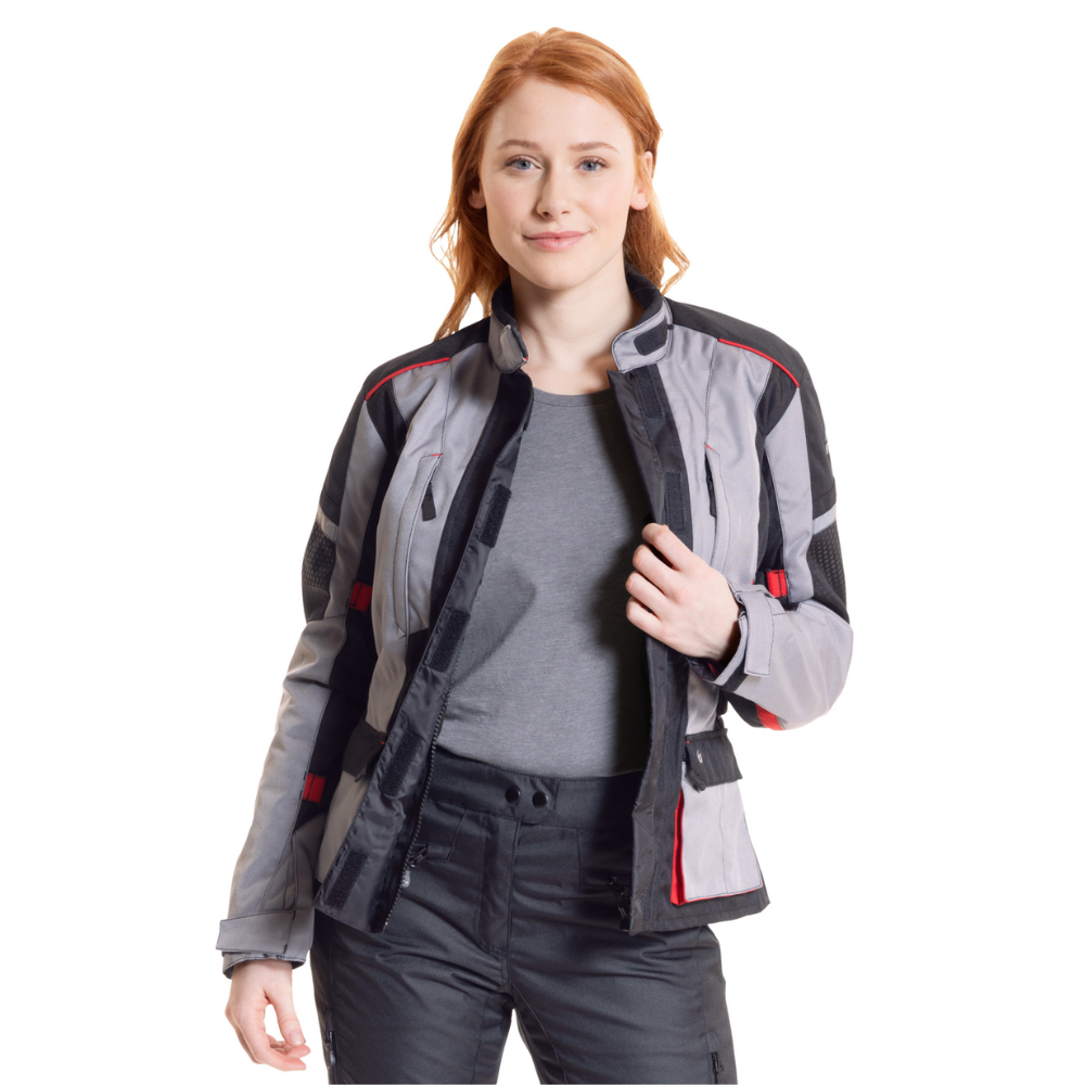 ¿Buscas una chaqueta de mujer cómoda y elegante con membrana climática? ¿Preferiblemente uno que también sea ideal para la vida cotidiana y para usar durante todo el año? Entonces la chaqueta textil Fastway *Touring Women 211* es para ti. Te servirá bien dondequiera que vayas. Buen ajuste, corte largo, ajuste individual y con una excelente combinación de tejido 600D resistente a la abrasión y laminado de membrana climática, y todo esto a un precio atractivo. *Touring Women* es simplemente un auténtico Fastway.