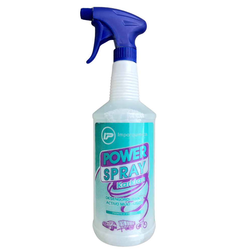 POWER-SPRAY KARKLAN es económico y está listo para usar. Excelente desengrasante, emulsiona y dispersa la suciedad sin agredir la pintura, rompe la película electrostática y limpia en profundidad sin necesidad de fregar. Producto de reacción química alcalina y sin colorantes.