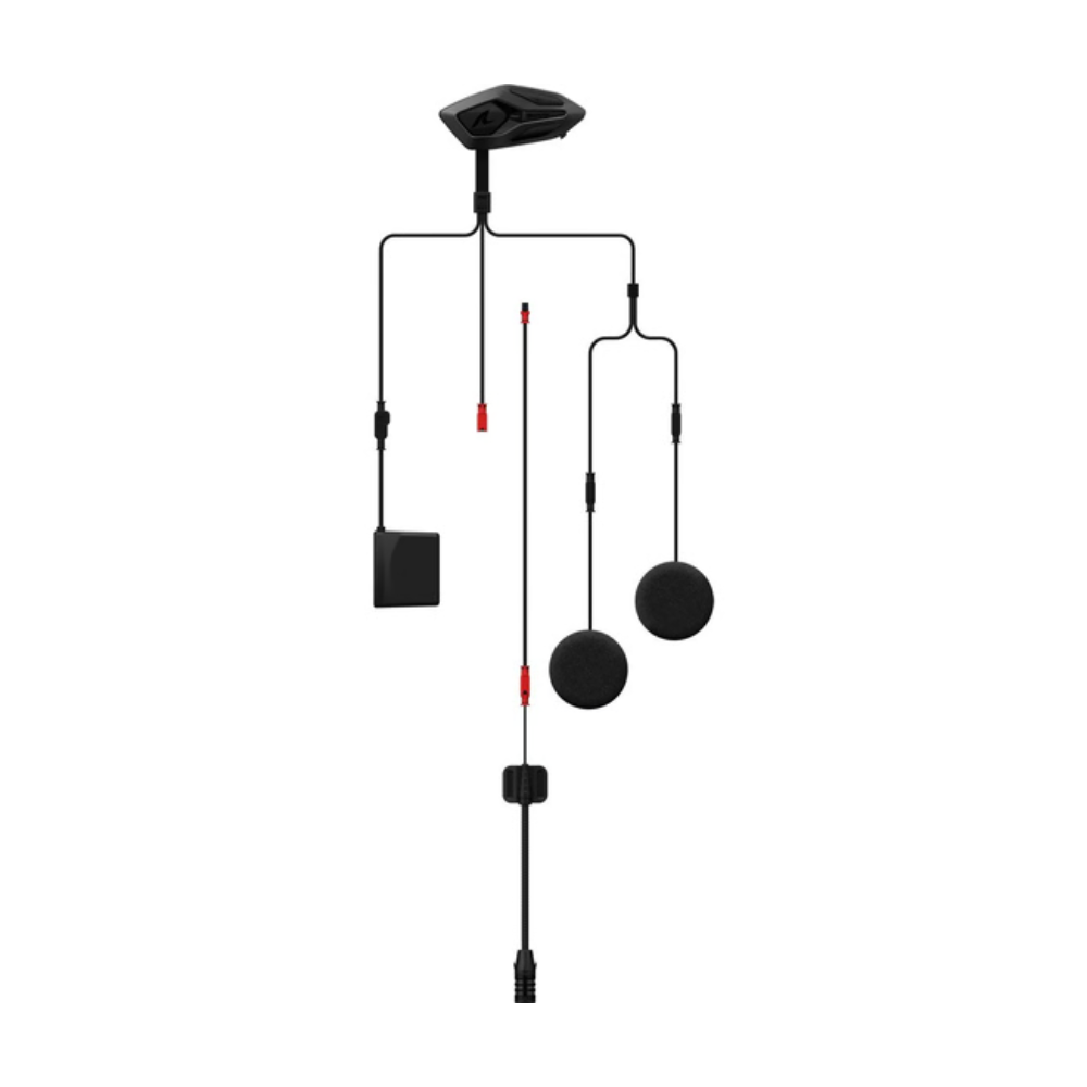 O seu design discreto e aerodinâmico adapta-se ao contorno do capacete sem comprometer o conforto do motociclista. Equipado com tecnologia Bluetooth 5.1, permite comunicação em grupo com até 4 utilizadores, com um alcance máximo de 800 metros em condições ideais.