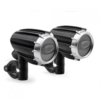 Pareja de proyectores universales certificados antivaho, con tecnología LED y carcasa de aluminio pintado en negro.