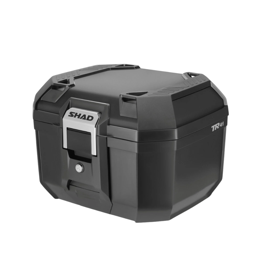 A TR41 é uma mala resistente, desenhada para a aventura. Os materiais de alta resistência e o design reforçado da base, com os seus quadros superiores e a estrutura do corpo central, tornam-na num top case resistente e robusto. Inclui uma fechadura em aço inoxidável com pega integrada e uma tampa em alumínio. Com capacidade para dois capacetes JET, pode transportar uma carga máxima de 5 kg.