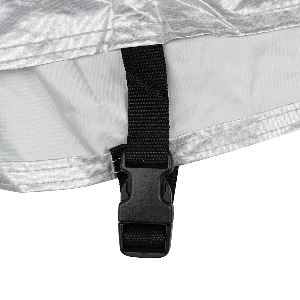 Projetado para uso interno e externo, oferece proteção contra chuva e poeira. As iniciativas da polícia também mostraram que as capas das bicicletas podem ser um meio útil de dissuasão de roubos. Isso é especialmente verdadeiro se você prender a alça abdominal no lugar e usar a tampa em conjunto com uma trava de corrente, enfiada nos orifícios de trava fornecidos, prendendo a motocicleta e a tampa no lugar ao mesmo tempo.