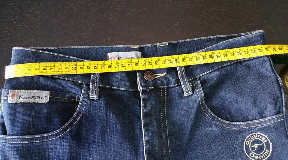 Para escolher o tamanho deve guiar-se pela medida de cintura ou medindo a partir de outras calças que lhe fiquem bem.