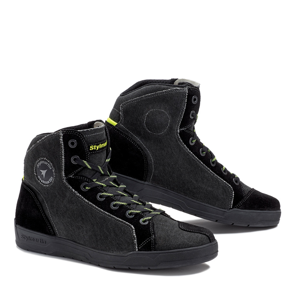 FECHO: cadarços intercambiáveis em 2 versões (fluo amarelo e fluo preto/amarelo)